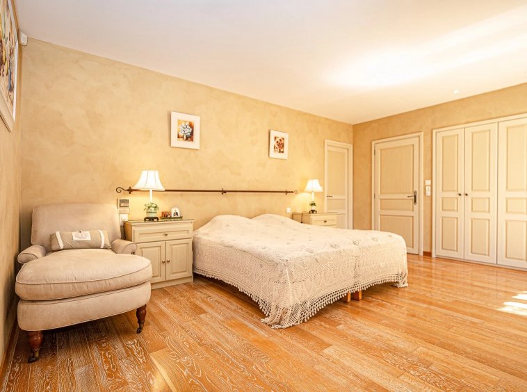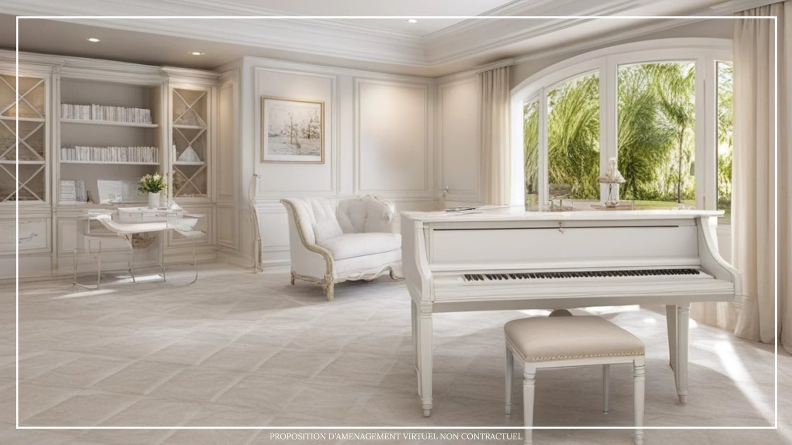 Dès l’entrée, un vaste séjour baigné de lumière vous accueille avec un piano, une cheminée et une bibliothèque, parfait pour des moments de détente ou de réception. Le salon, équipé d’un bar et d’une cheminée, s’ouvre sur une splendide terrasse prolongée par une piscine chauffée, invitant à la détente en plein air. La cuisine entièrement équipée avec sa salle à manger ravira les amateurs de gastronomie. Au rez-de-chaussée, trois chambres dont une suite parentale de 100 m² avec dressing et salle de bain privée offrent confort et intimité.
