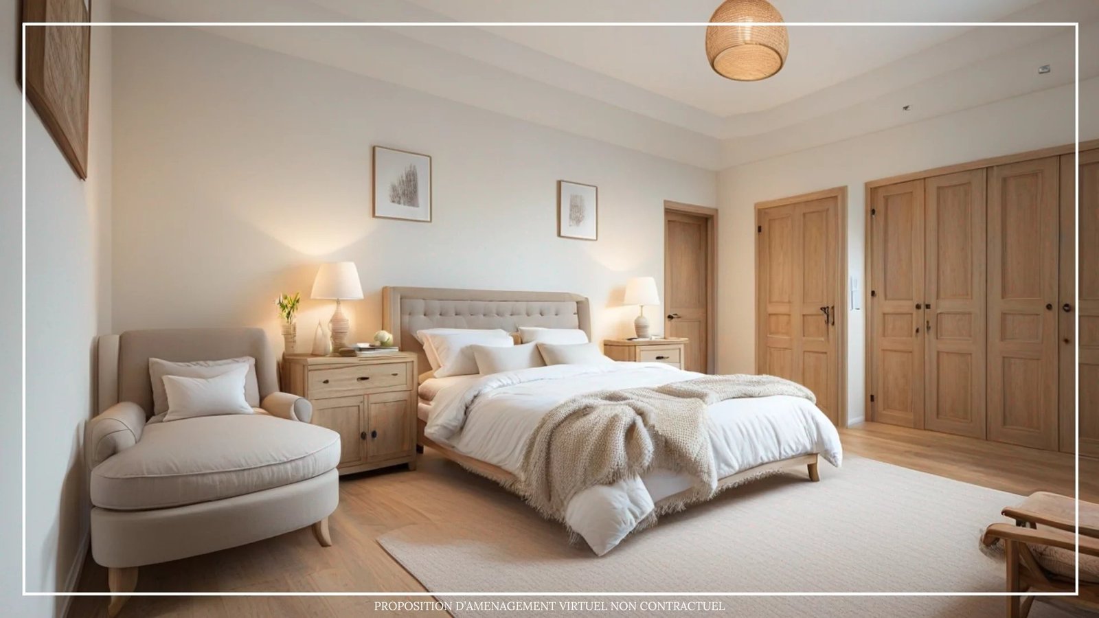 À l’étage, quatre chambres lumineuses avec balcons privés et salles de bain attenantes vous assurent un espace de repos élégant, ainsi qu’une chambre dédiée au personnel.