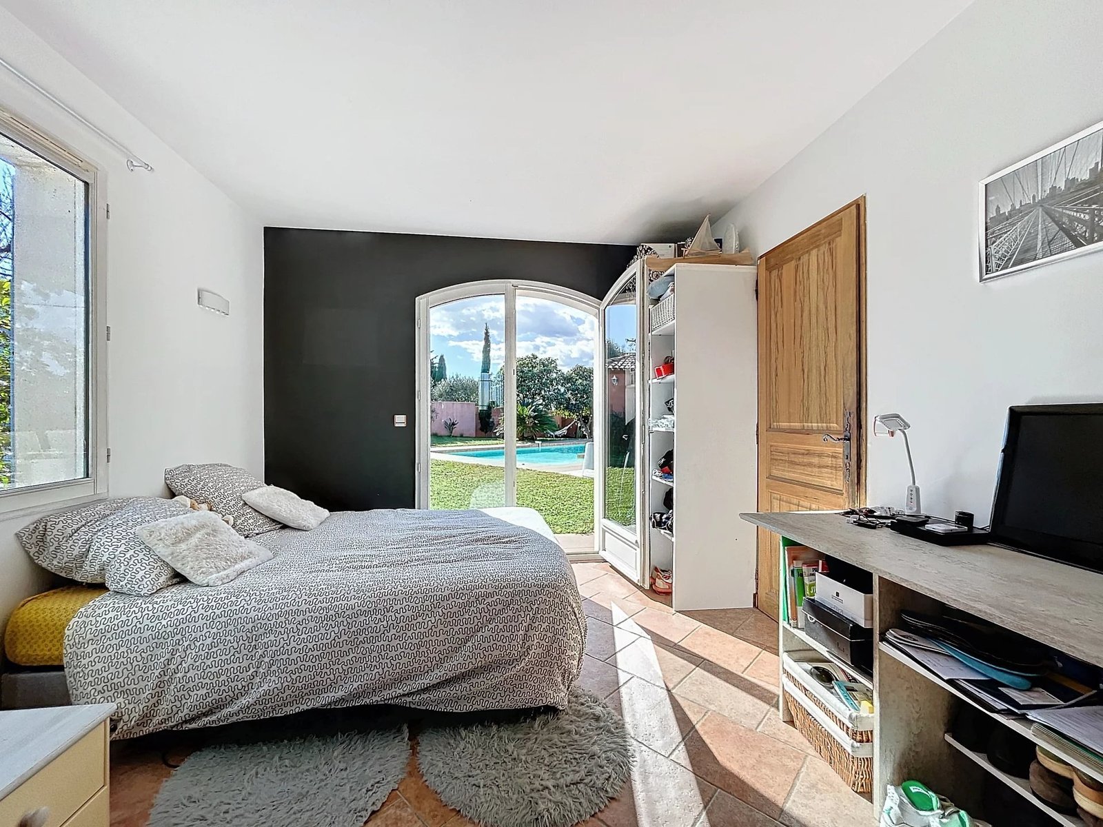 – Une piscine avec pool-house ajoute au confort. Le système de chauffage est assuré par une pompe à chaleur.